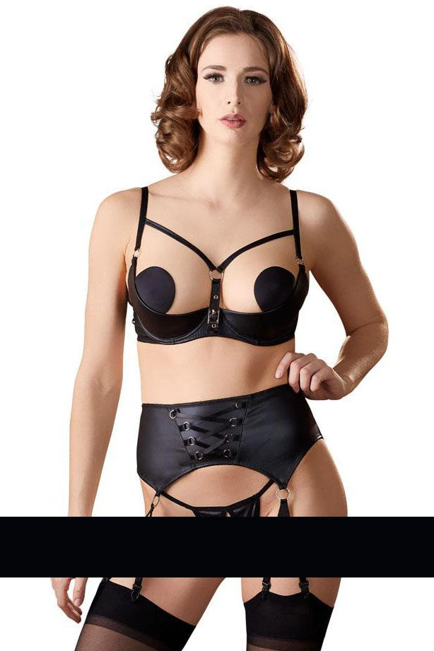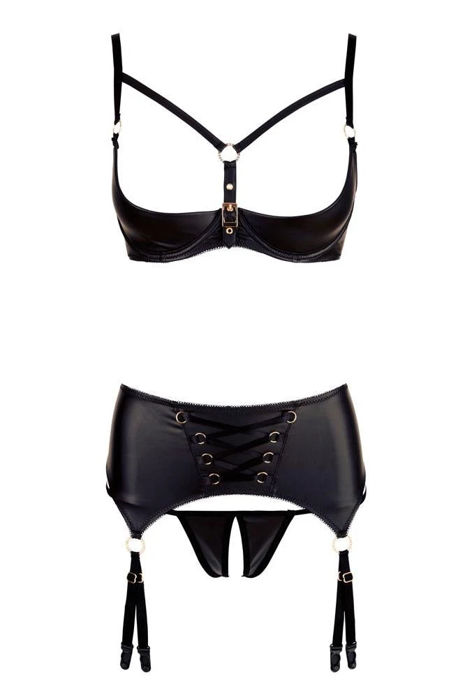 Abierta Fina Shelf Bra Set with Suspender Straps.