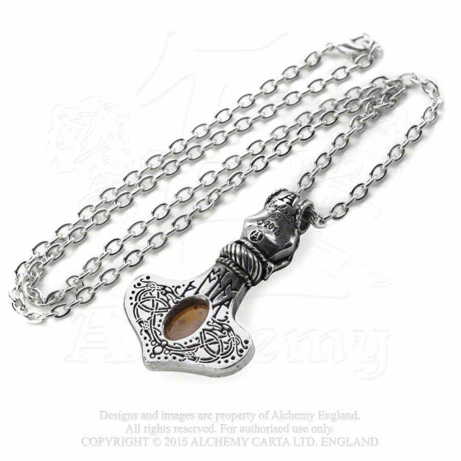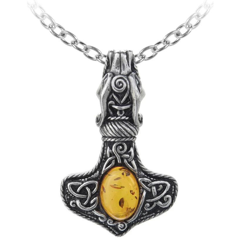 Alchemy Gothic Amber Dragon Thorhammer Pendant.
