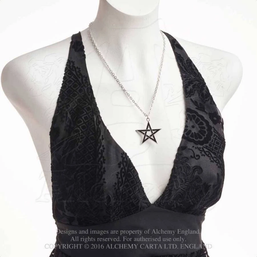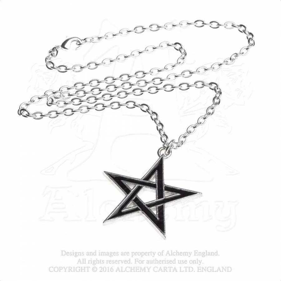 Alchemy Gothic Pewter Pendant Black Star Pentagram Pendant P775.