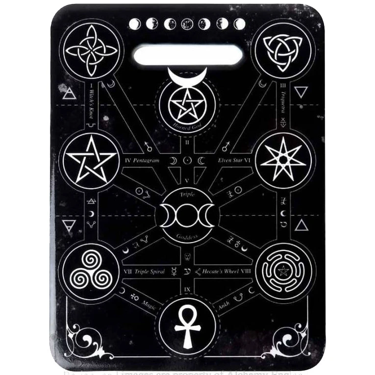 Food is magic! Bring some magic to your kitchen area with this simply divine magic symbol trivet/ chopping board. This perfect addition to any witches kitchen will look simply magical hanging on a wall. Or cast your spells and create stunning food which can be presented or sliced on this darkly stunning piece.