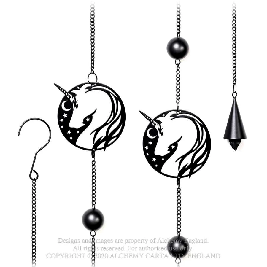 The magical power of the unicorn rests in it’s singularity for it is the sole survivor of an ancient lineage, who’s fellows all perished in the great flood. Add your own unique style to any room, home or garden with these Alchemy designed hanging decorations/ wind chimes. We have designs to suit every alternative taste.