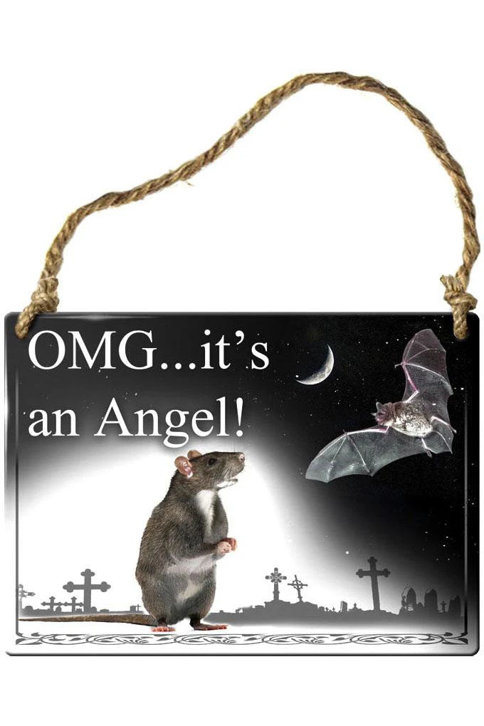 Alchemy Gothic OMG Its an Angel Rat and Bat Steel Hanging Plaque.