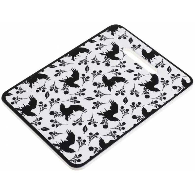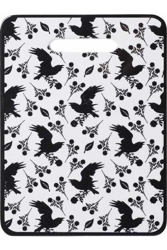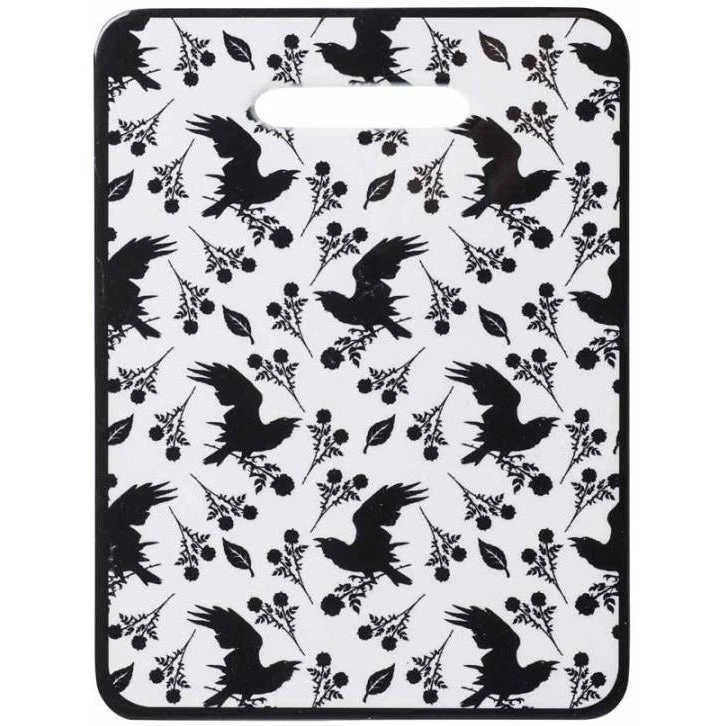 This elegant Alchemy raven and rose design will look stunning in any kitchen or dining room. This fully functional chopping board or serving trivet will look simply stunning displayed on a wall in the kitchen or as a home decor item. This darkly elegant design is also presented on a spoon rest an jigsaw coaster/ trivet set.