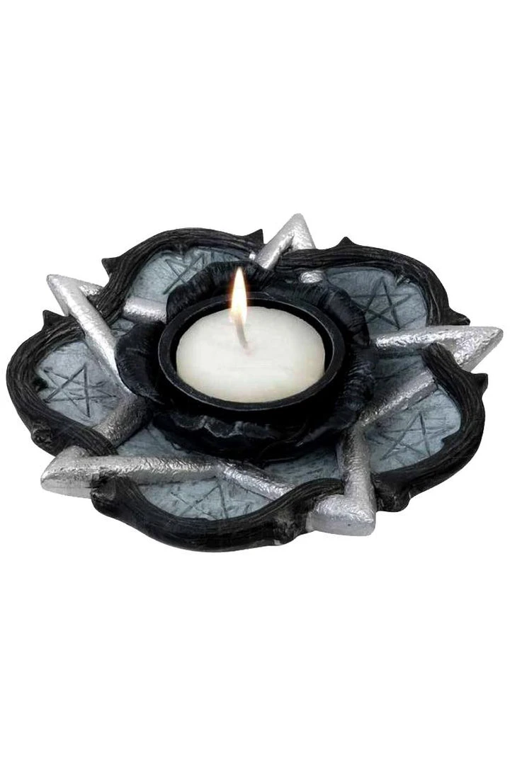 Candle Holders and Tea Lights The ethereal light of the fifth element ensnared by the midnight rose. (Candle not included).