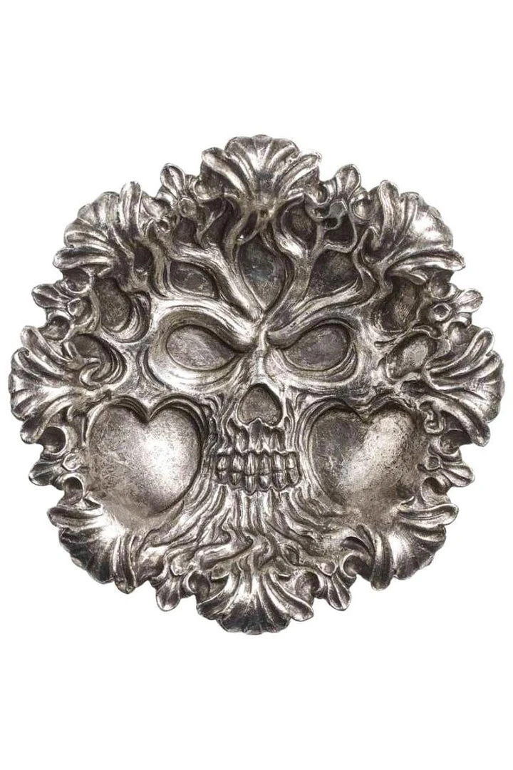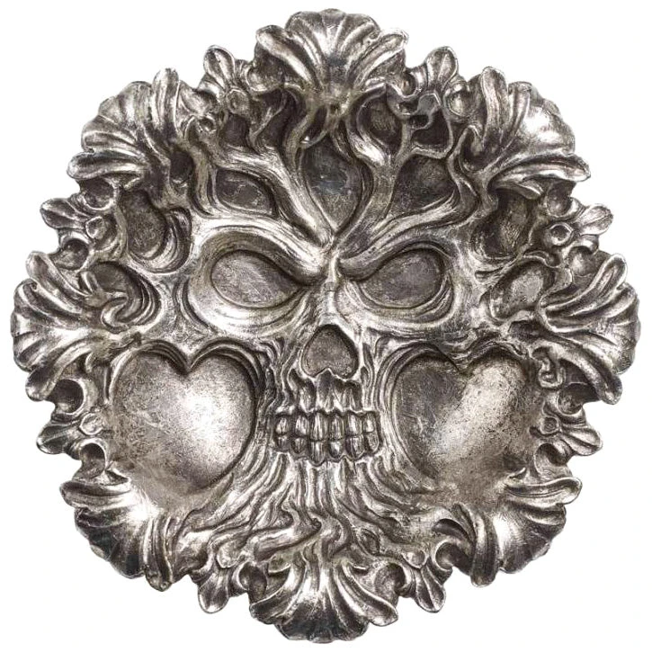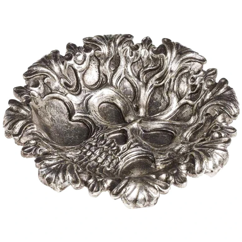 The ghost of Cernnunos – the horned king, bereft of his foliate crown. The lord of the dark forest and master of winter, leading the wild hunt with his ancient chant: “Hoof and horn, hoof and horn: All who die shall be reborn. Corn and grain, corn and grain: All that falls will rise again.” The popular Alchemy ‘Tree of death’ Skull design has created this very impressive dish. The perfect centre piece to your alter or dining table.
