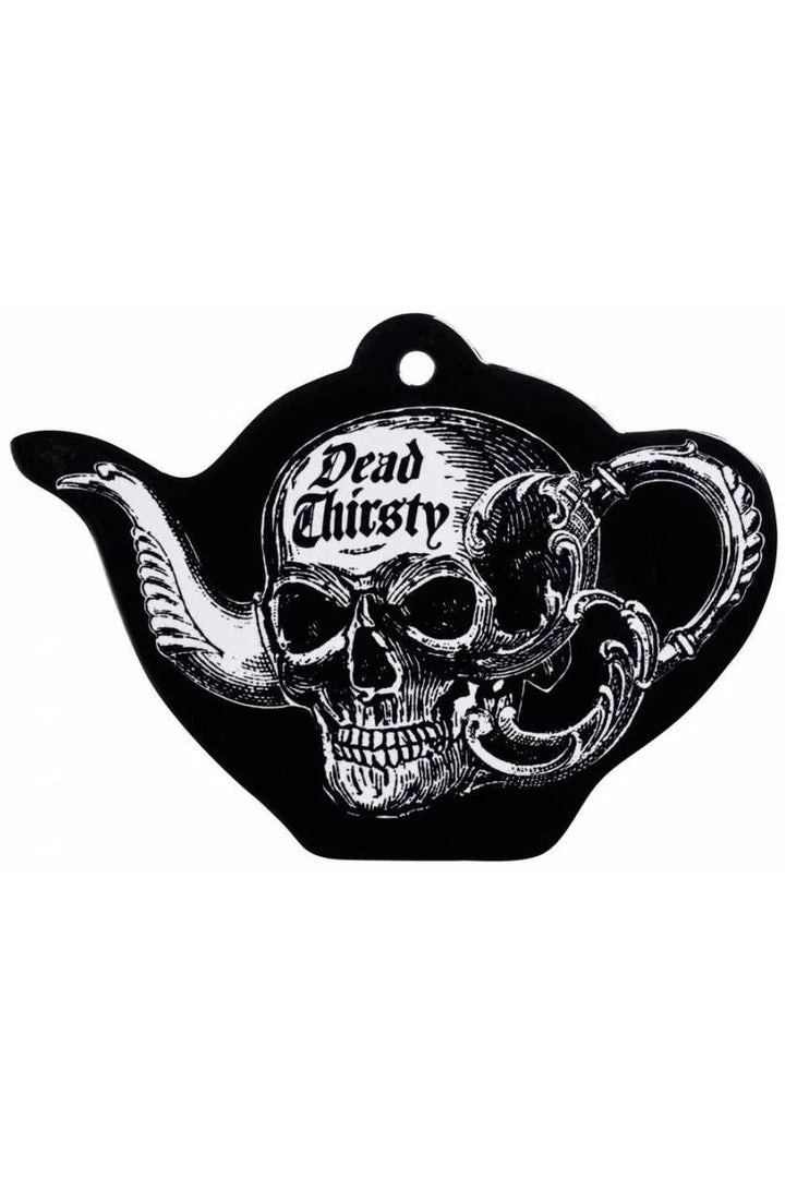 A fun and functional teapot shaped coaster baring the ‘Dead Thirsty’ baroque skull design. A darkly beautiful addition to any kitchen. This piece can be used as a coaster for mugs, pans, teapots and more! What a wonderful gift it would make for anyone whose ‘Dead Thirsty’ This unique trivet / giant coaster is designed by Alchemy and forms part of the high quality ceramic homewares collection.
