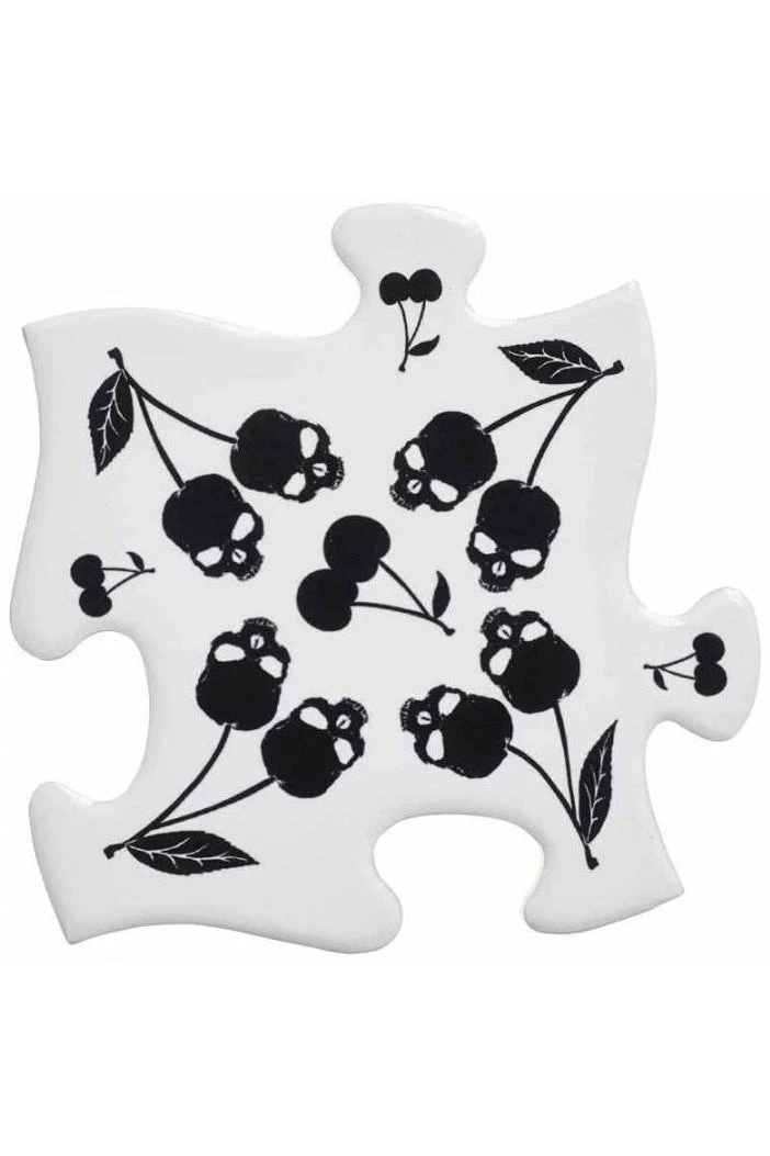 Alchemy Gothic Black Skull Cherries Jigsaw Coasters