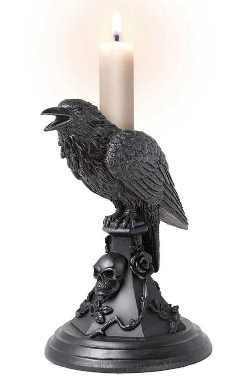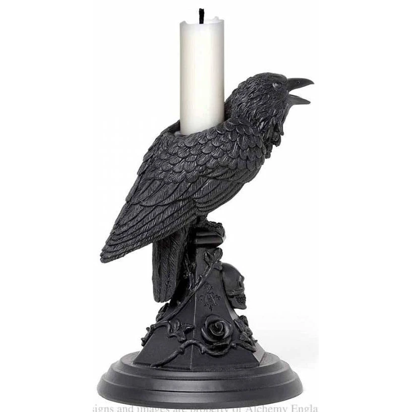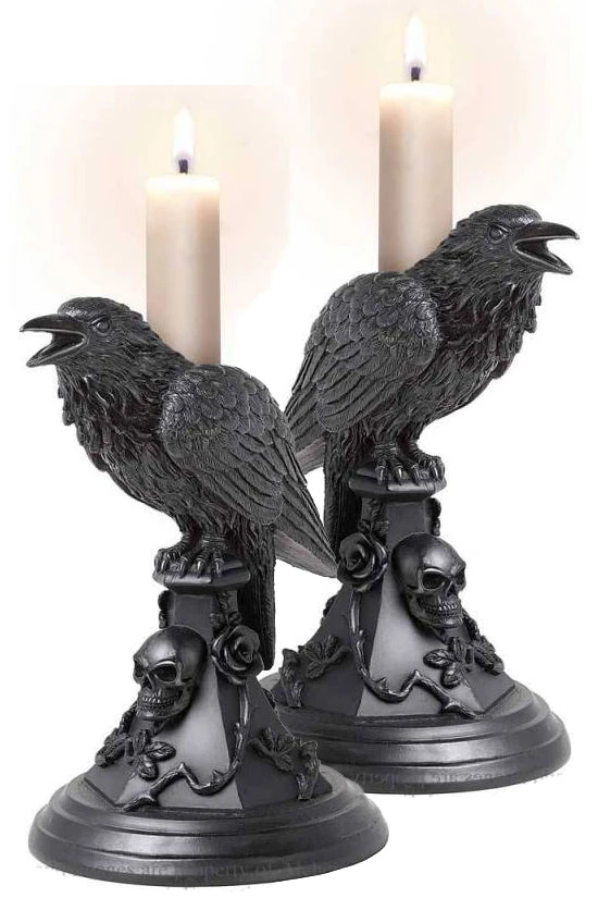 Alchemy Gothic Pair of Poe’s Raven Candle Sticks.