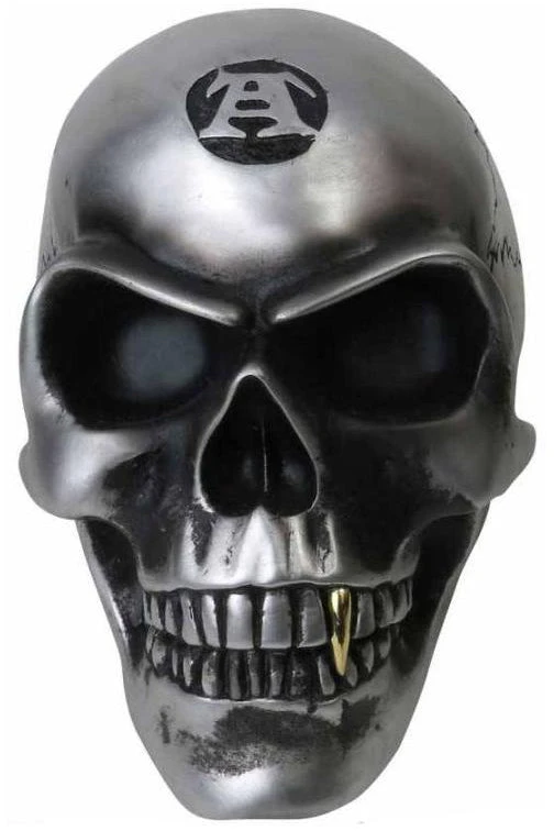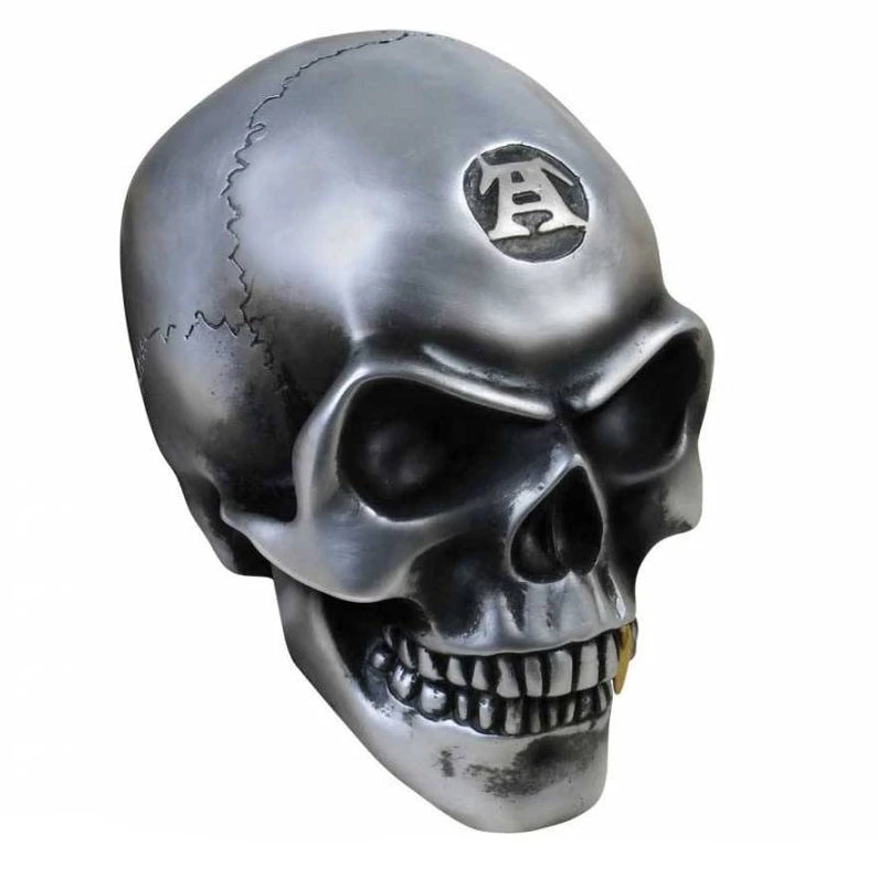 A life-sized Alchemist’s skull, immortalised in the mercurial lustre of the secret arts. With the traditional golden tooth.