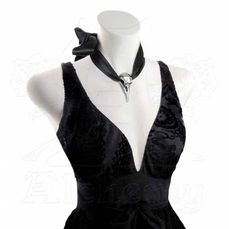 Alchemy Gothic P736 Rabeschadel Choker, Gothic Raven Skull Ribbon Choker.
