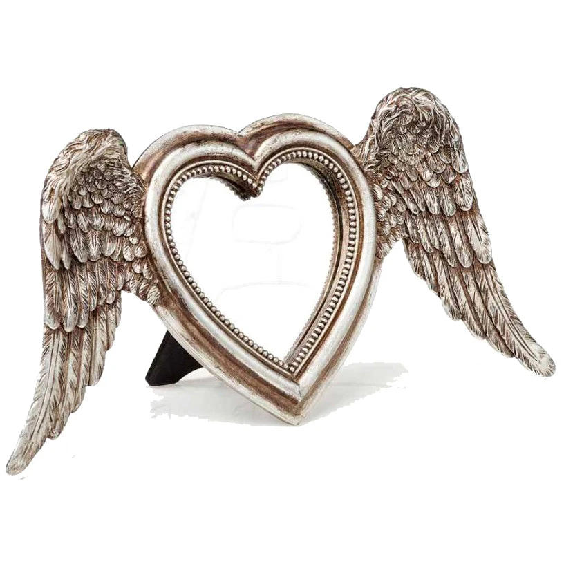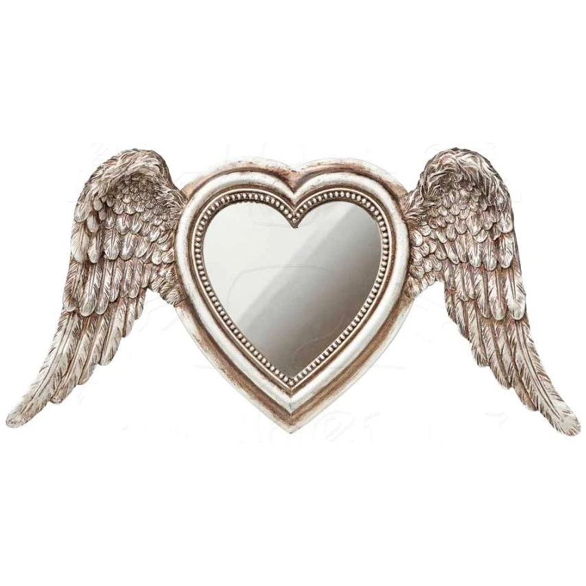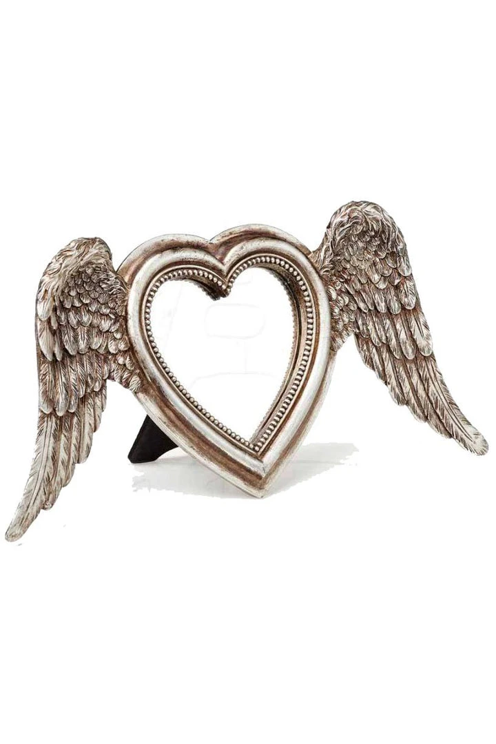 See yourself through the looking glass with this beautiful winged heart mirror. The perfect accessory for any dressing table or mantel piece. Or should you prefer to catch a glimpse of your reflection, this mirror can be easily displayed on the wall of your favourite room. This mirror is a part of the ‘Shades of Alchemy’ collection. A range of sumptuous giftware and home interior products to adorn any boudoir or home. Winged Heart – Wings Down – Mirror. Antique gold finished resin frame, with mirror front. This mirror can be free standing or wall mounted.