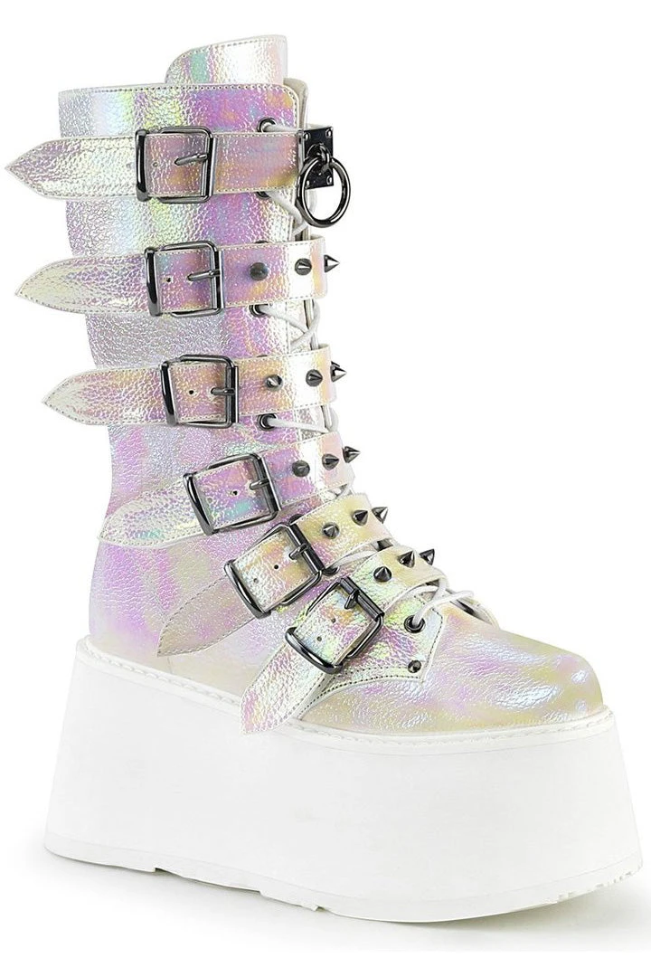Demonia Ladies Pearl Iridescent Vegan Leather DAMNED-225 Boots.
