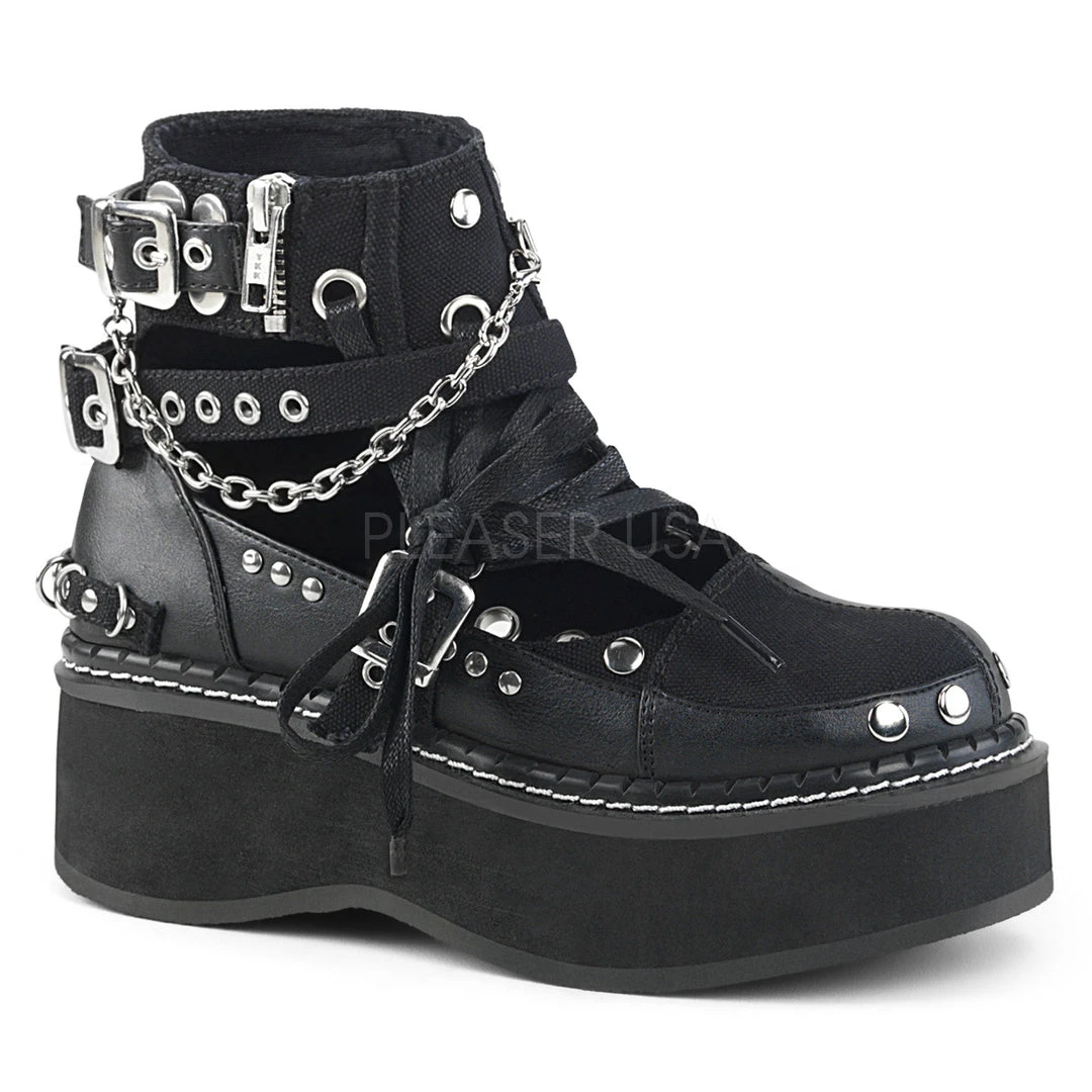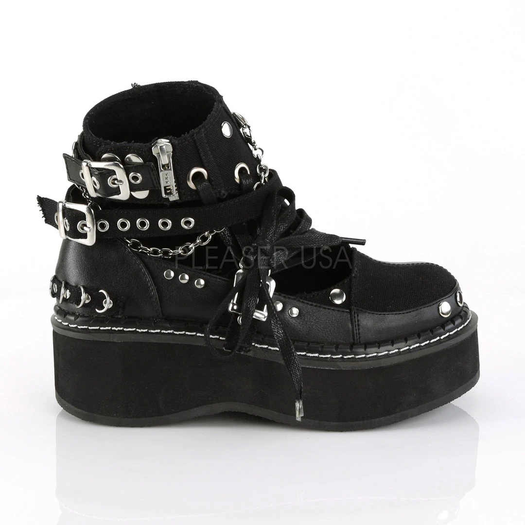 Demonia Black Canvas, Vegan Leather EMILY-317 Boots.