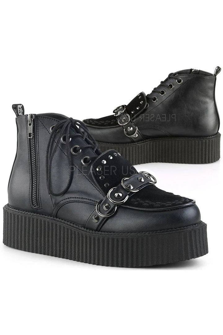 Demonia Mens Black Vegan Leather and Faux Suede V-CREEPER-555 Shoes.