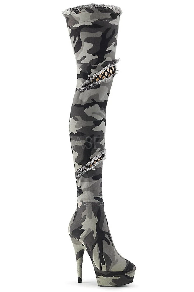 Pleaser Camo Stretch Fabric DELIGHT-3005 Boots.
