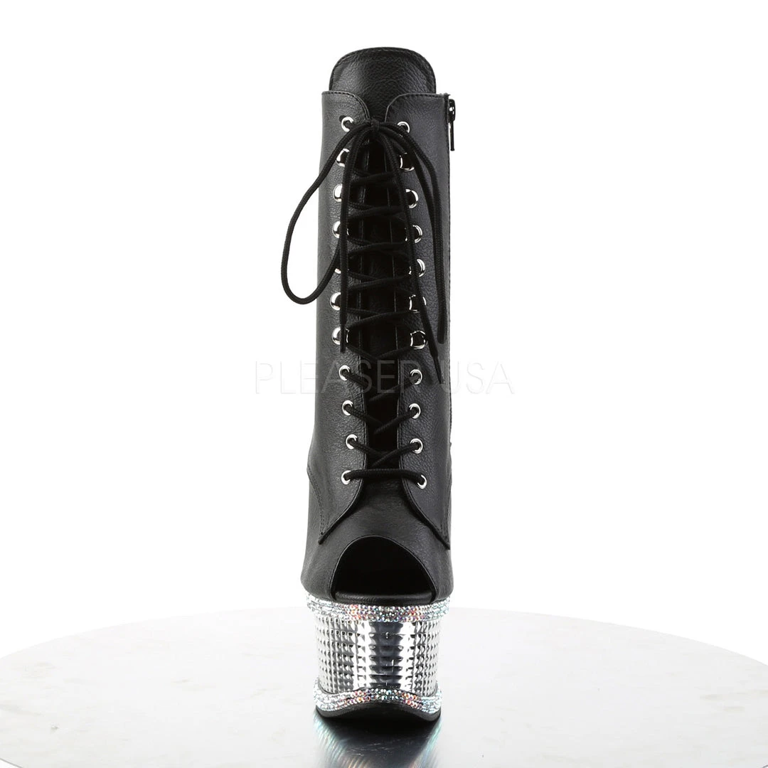 Pleaser Ladies Black Faux Leather with Silver Chrome and Rhinestones ILLUSION-1021RS Boots.