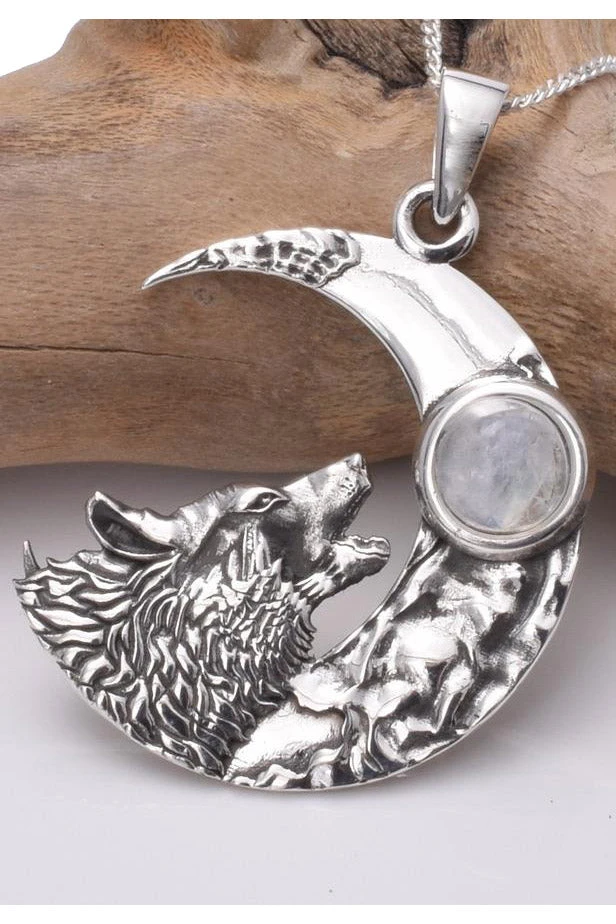 Seventh Sense 925 Silver Howling Wolf Pendant.