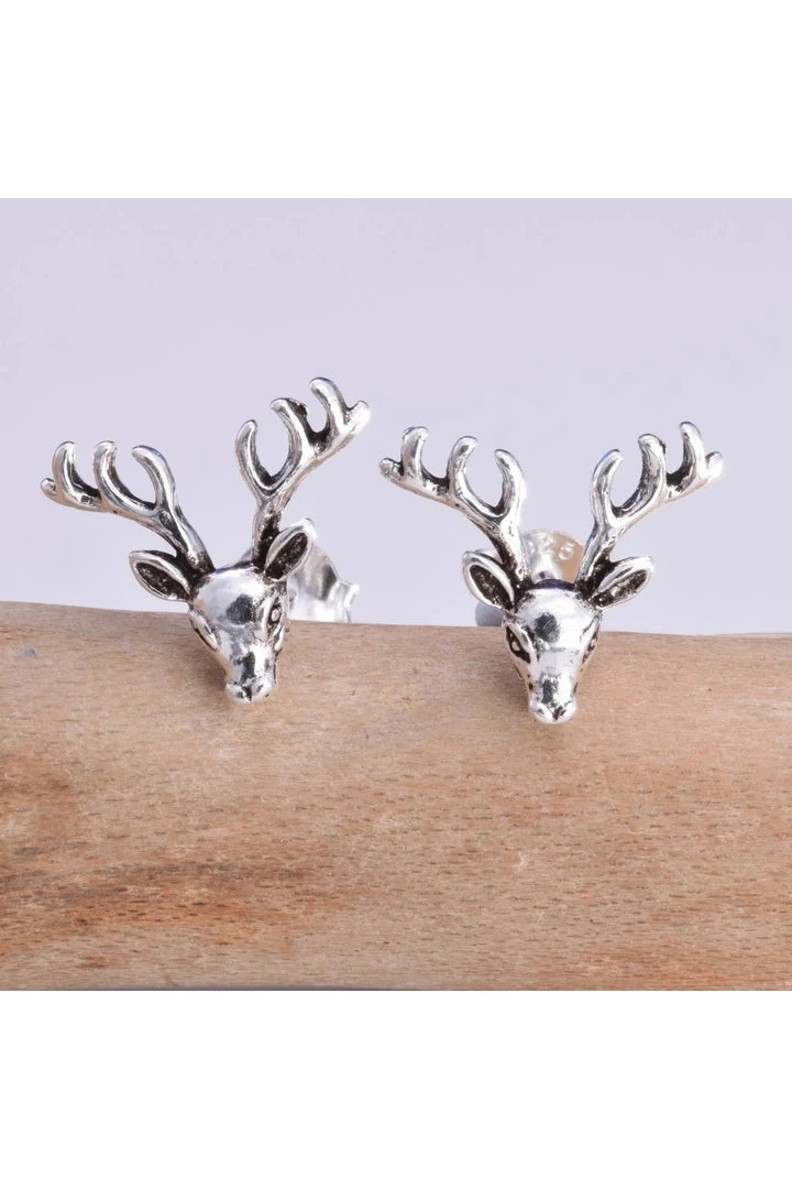 Seventh Sense Stag Stud Earrings Silver.