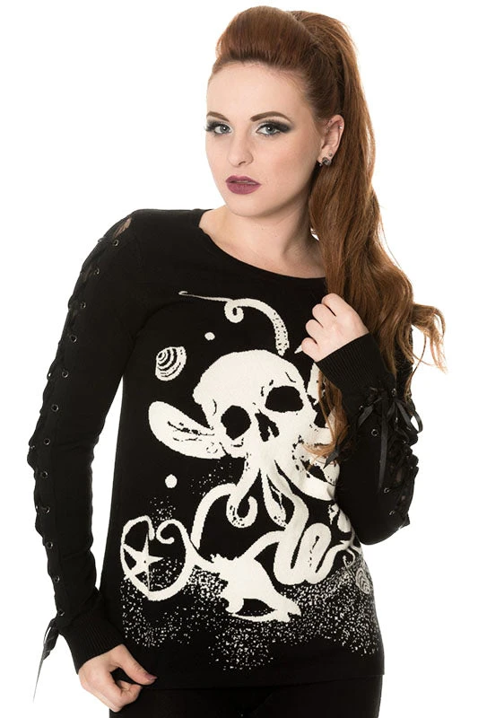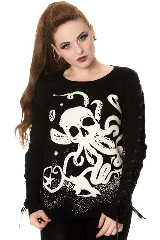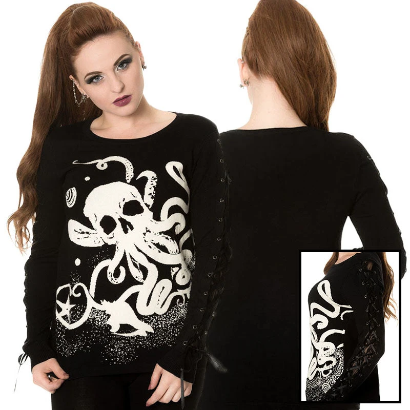 Afterlife Begins Knit Jumper with a Spooky Octopus on by Banned Apparel.