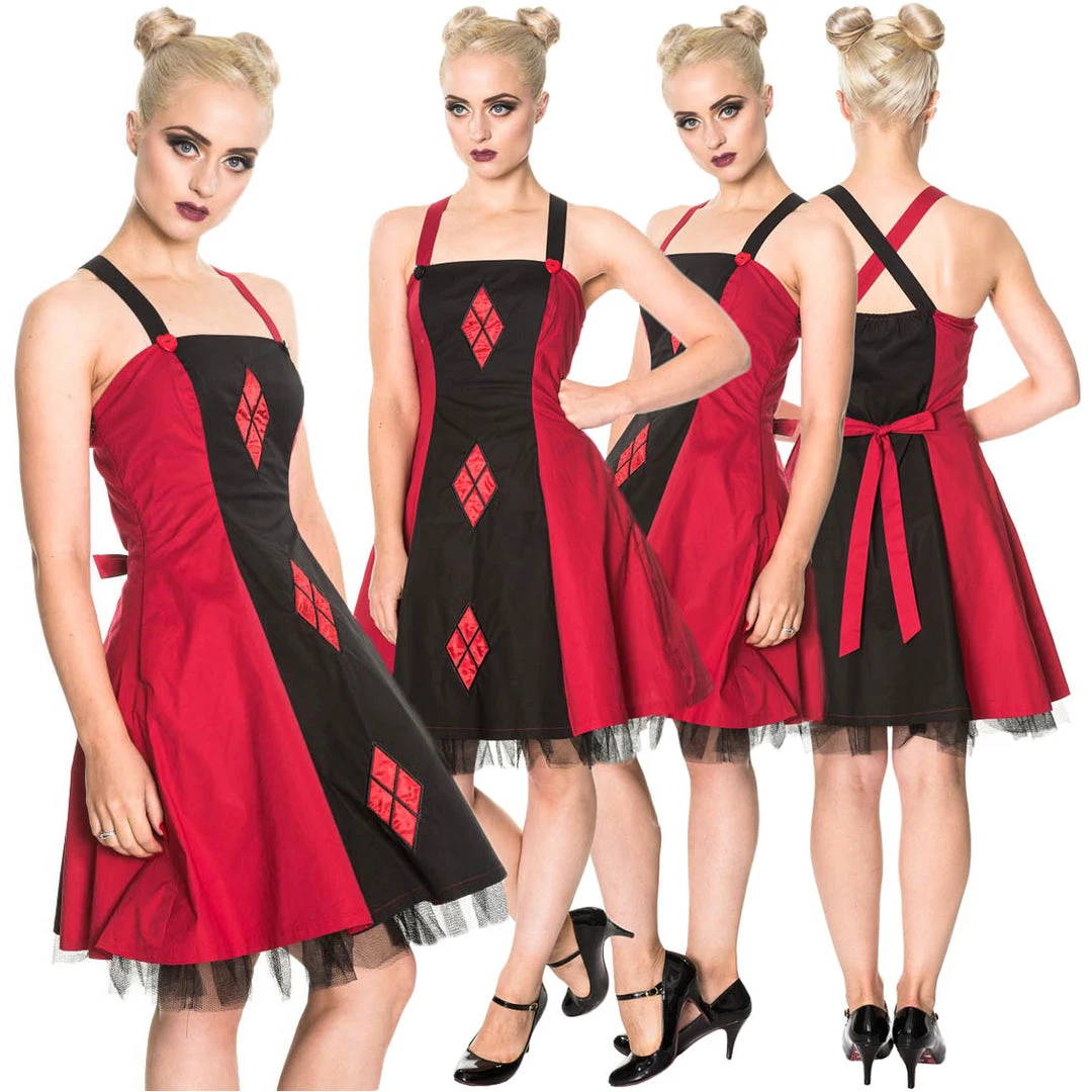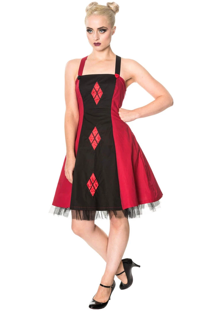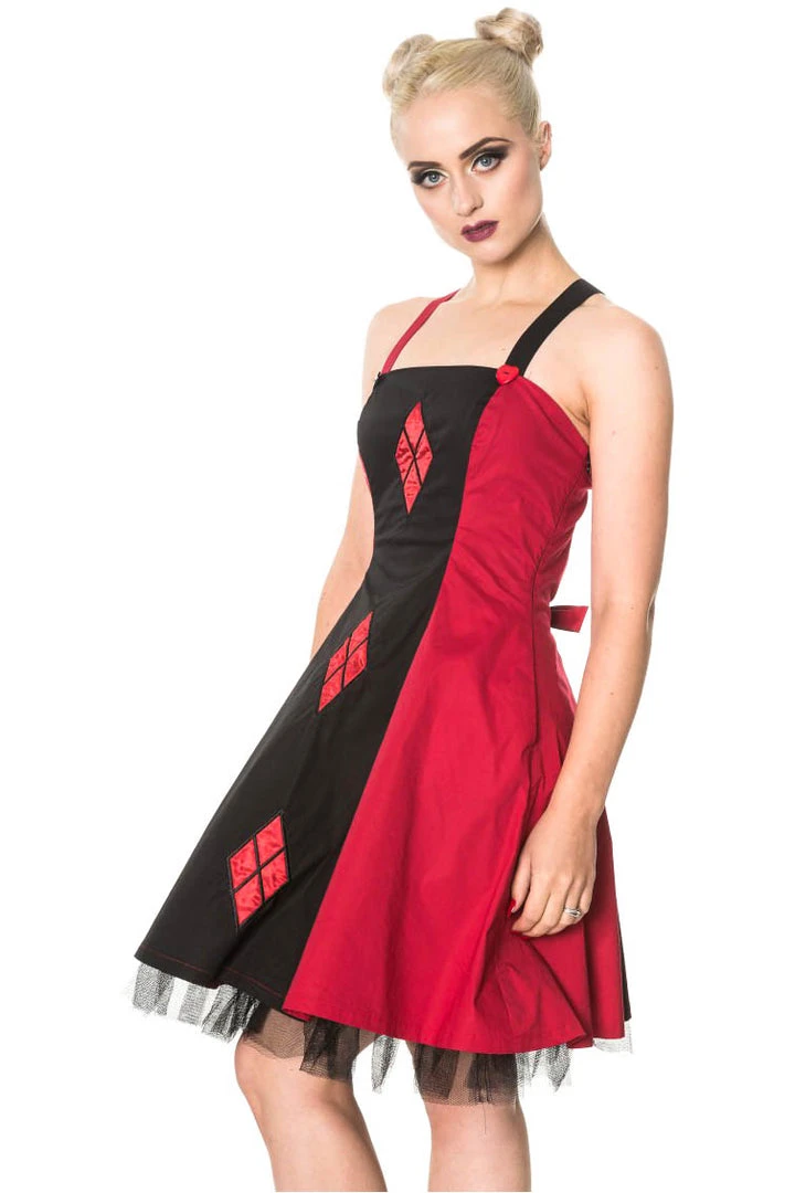 Banned Gothic Dress, Harlequin Pattern Juno Dress.