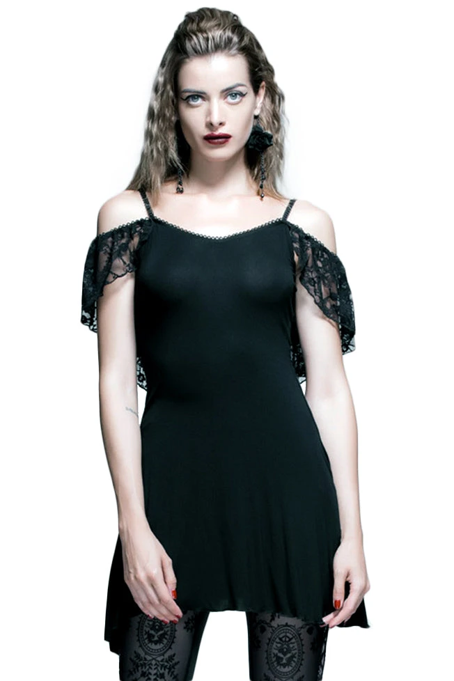 Devil Fashio Elegant Gothic Lace Drop Back Top.