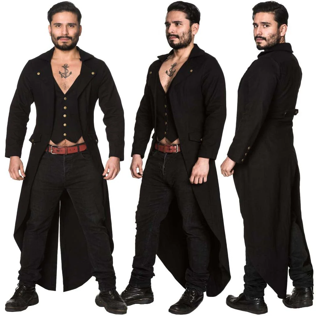 Banned Gothic Jacket. Mens Zone Out Jacket in Black Tailcoat style back detail and integrated waistcoat style front cut.