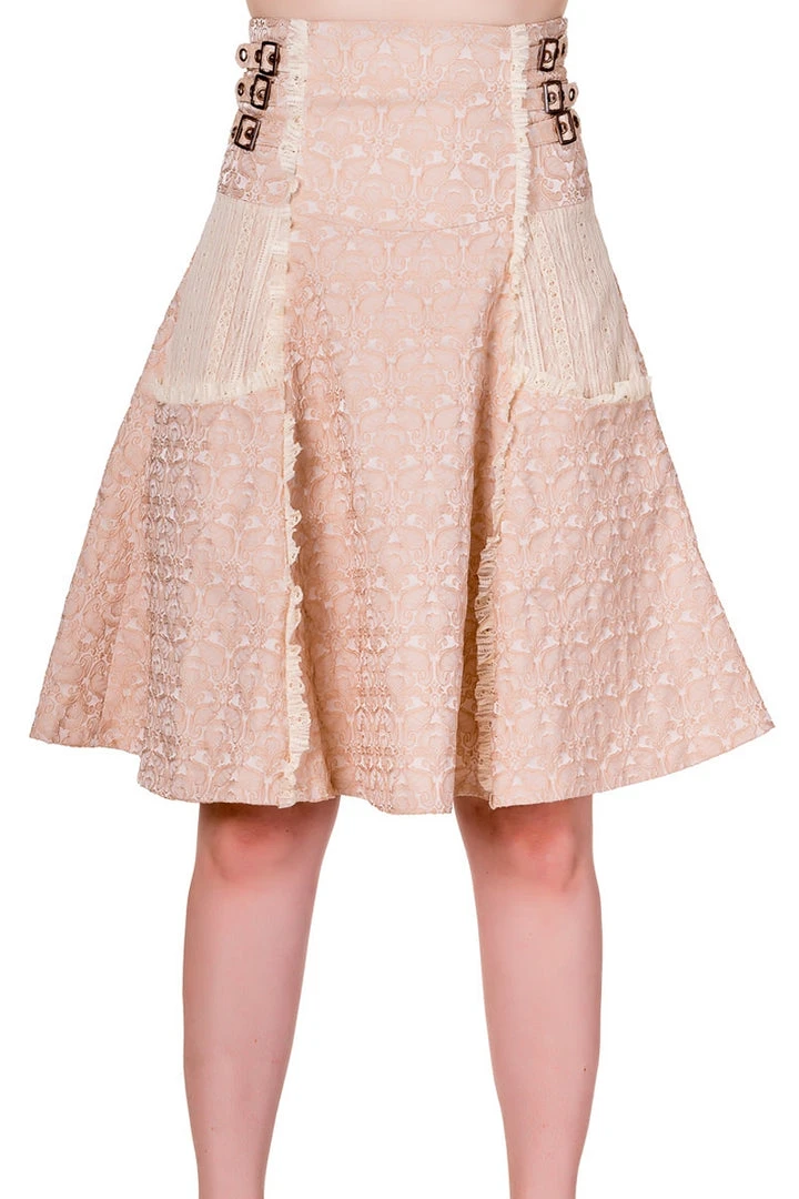 Banned Steampunk Skirt, Rise of Dawn Skirt in Cream Brocade.