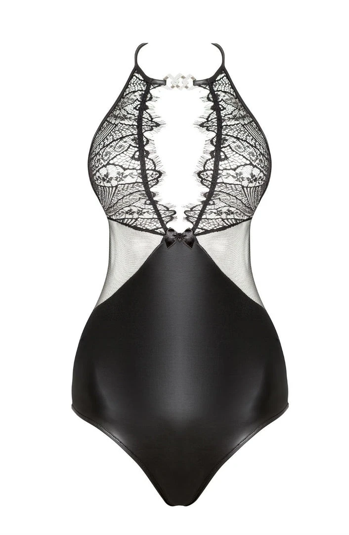 Delilah is an elegant body with a soft delicate wet look stretch fabric and beautiful lace. The impressively made upper part wonderfully displays the neckline. In addition, it is decorated with a dazzling diamante buckle.