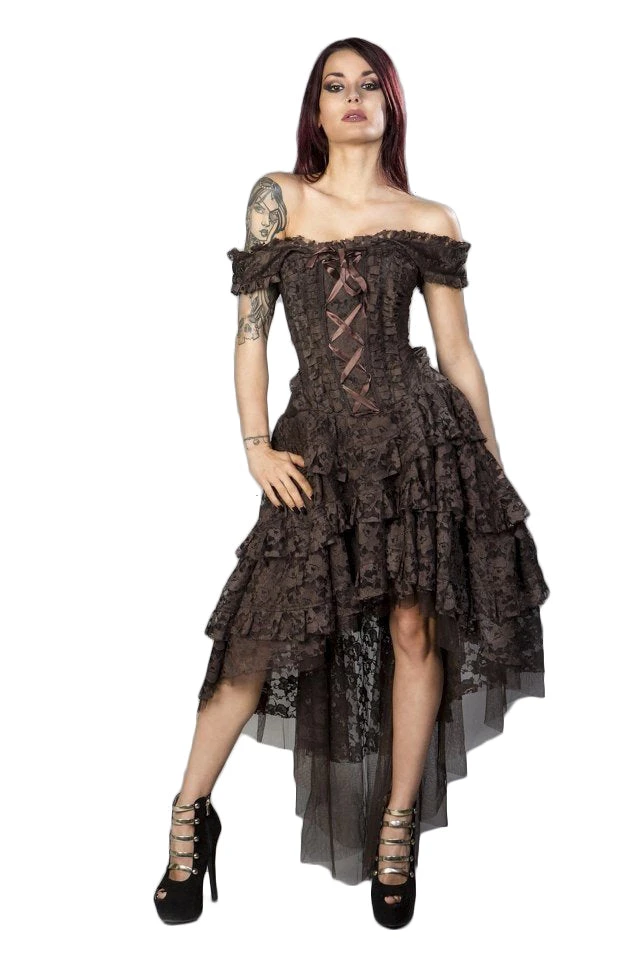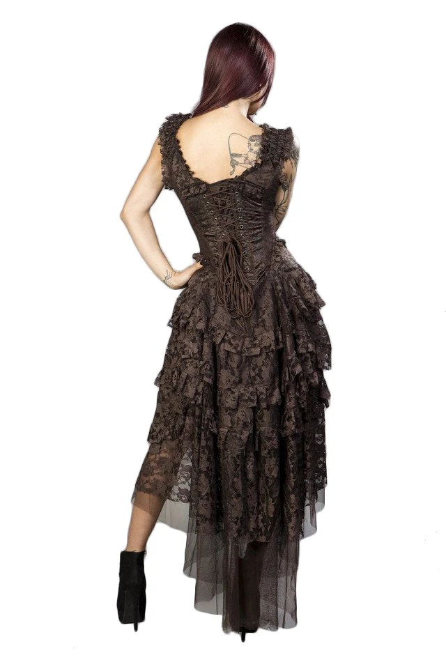 Burleska Ophelie Dress with Brown Brocade and Brown or Black Lace.