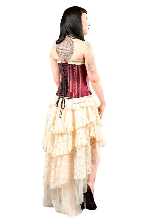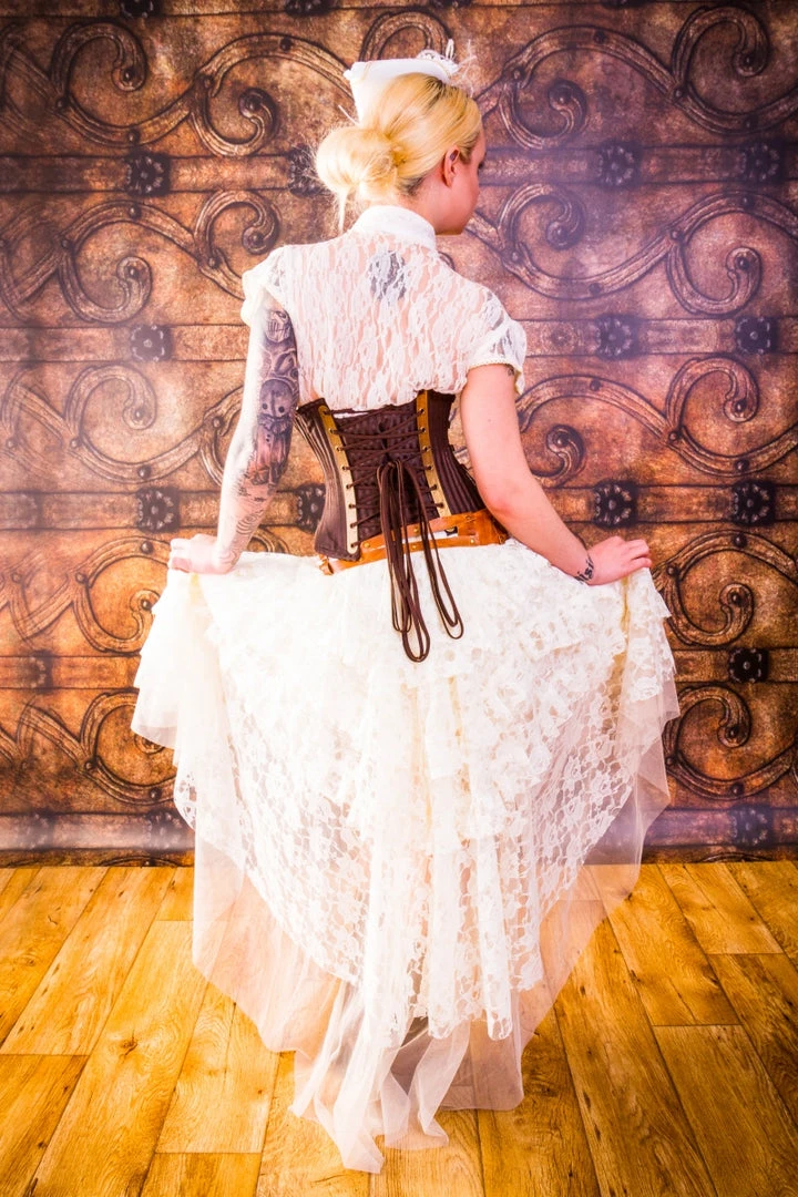 Sumptuous Falls of Cream Lace flow and cascade with Victorian Boudoir chic! A truly Beautiful Waterfall Style Skirt with layers of lace and Net underskirt, exquisite with a corset!