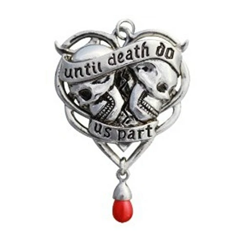 Anne Stokes Carpe Noctum Spondeo Til Death Us Do Part, Heart and Skulls Pendant Necklace.