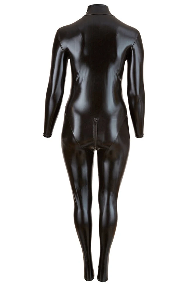 Fits like a second skin! This black jumpsuit has long sleeves and legs, a stand-up collar and it also covers her entire body, however that doesn’t mean that it´s not a sexy outfit. The stretchy material is tight-fitting and really emphasises her breathtaking curves. The wide 2-way zip starts at the neck, goes over the crotch and stops at the top of the buttocks – this means that you can quickly get it off, when you and your partner are getting it on!