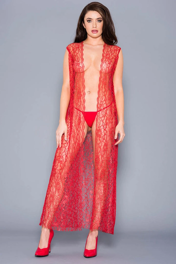 Draping open lace gown with g-string.