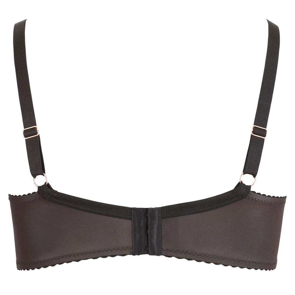 Put your beautiful breasts in the limelight! Shiny matte, underwired bra with lace inserts on the cups and adjustable, stretchy straps above the cups for a beautiful cleavage. There are integrated bones at the sides, wide adjustable straps and a hook-fastener at the back of the bra to make it even more comfortable to wear.