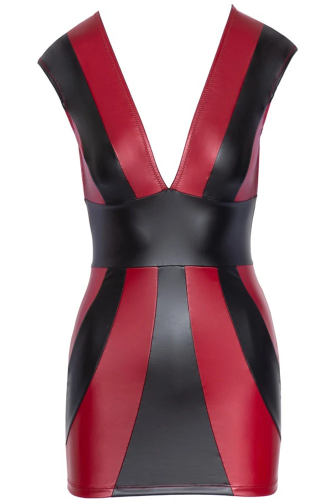 Hot stripes! A short dress from Cottelli PARTY that is fitted at the waist and made out of red and black matte look material. The dress is low cut at the front and the back. There is a stretchy strap with a clip fastener at the back of the dress which helps the dress fit perfectly. Soft and stretchy for a comfortable fit.