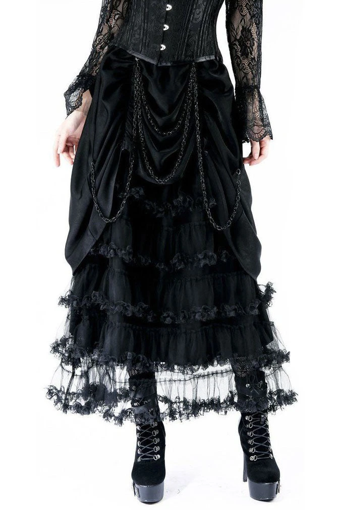 Dark in Love Tiered Net Long Gothic Skirt with Chain and hitching detail.