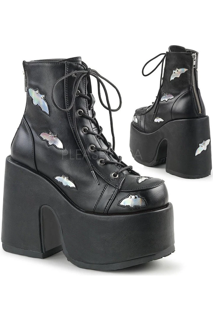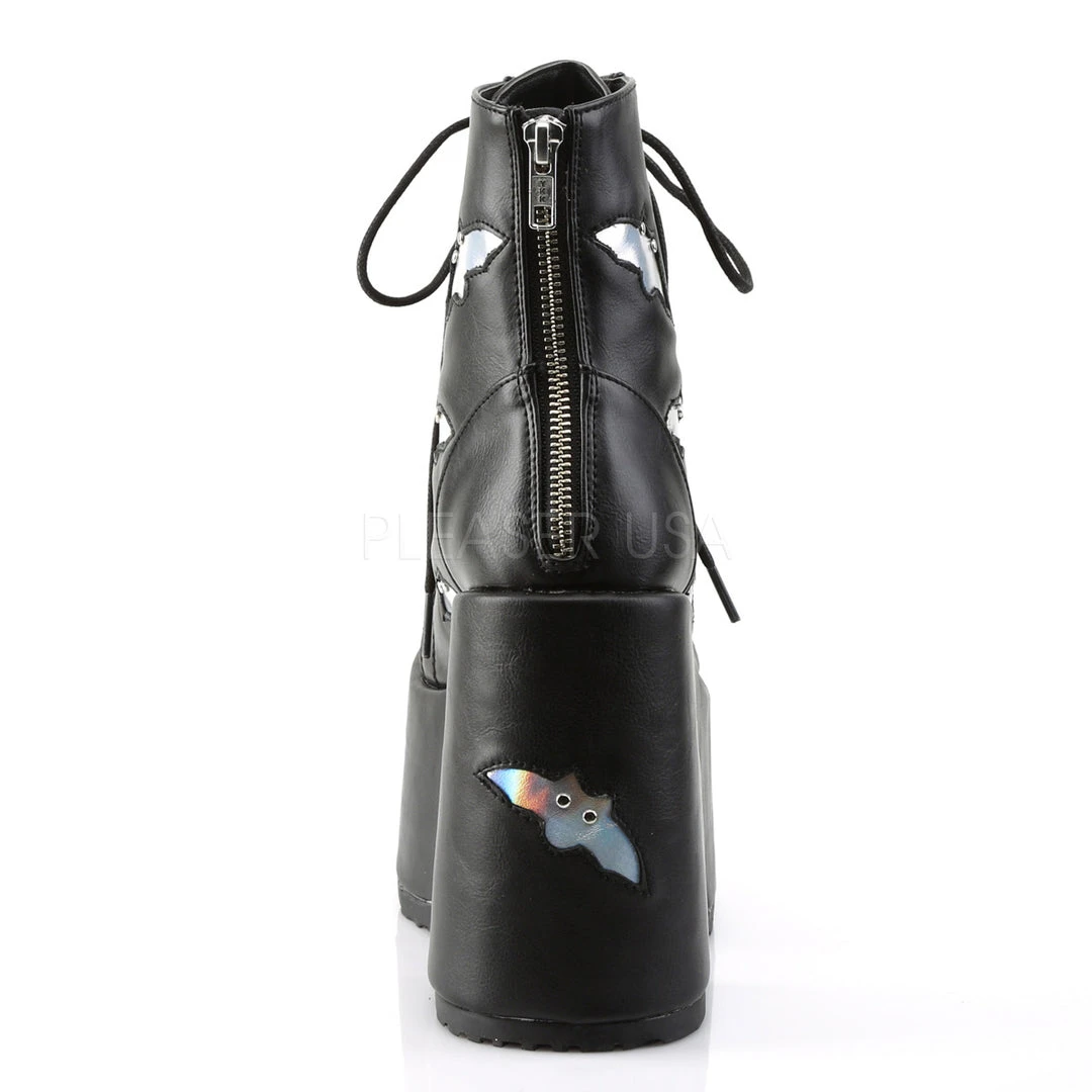 Demonia Black Bat Hologram Vegan Leather Boots CAMEL-201.