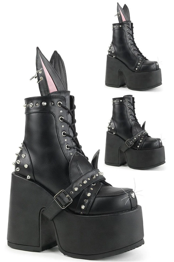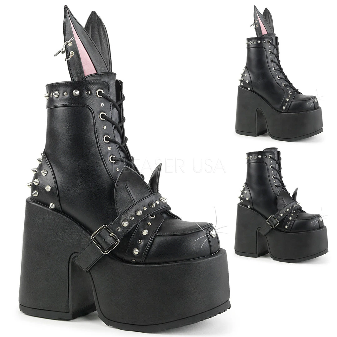 Demonia Ladies Cat and Bunny Vegan Boots CAMEL-202.