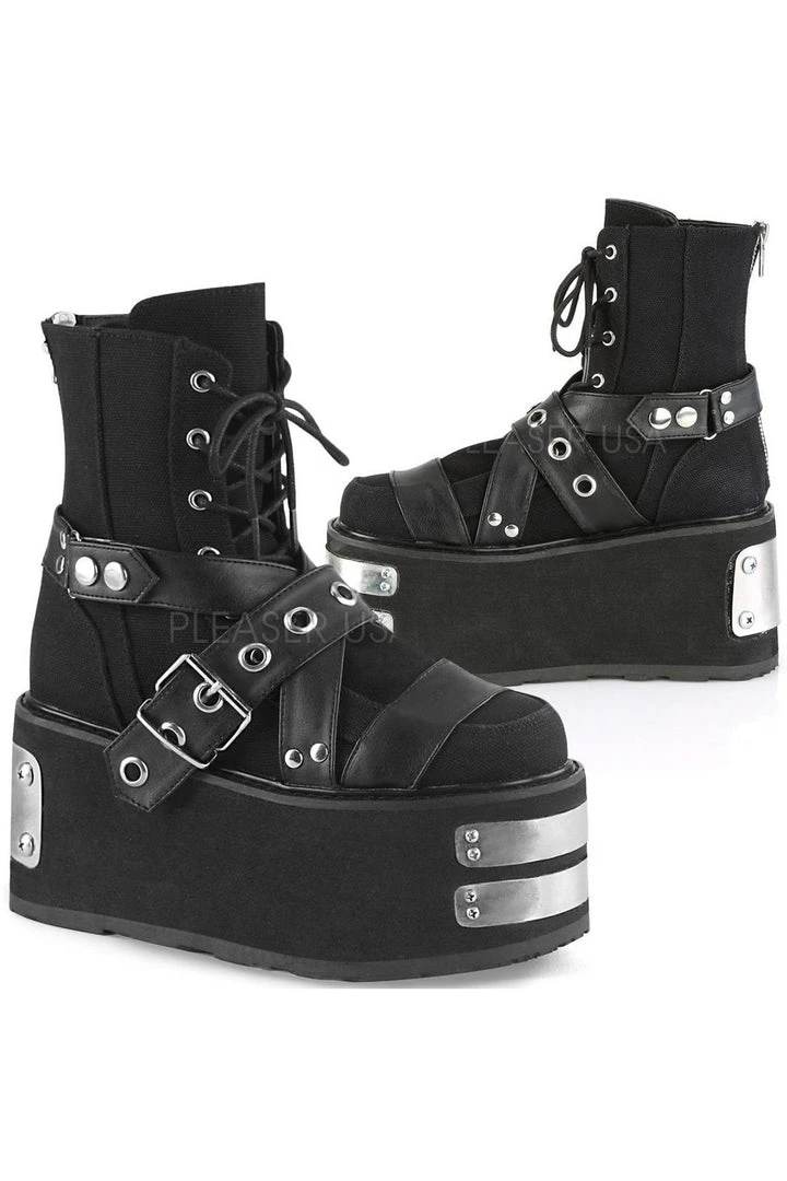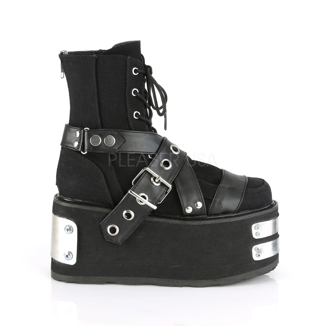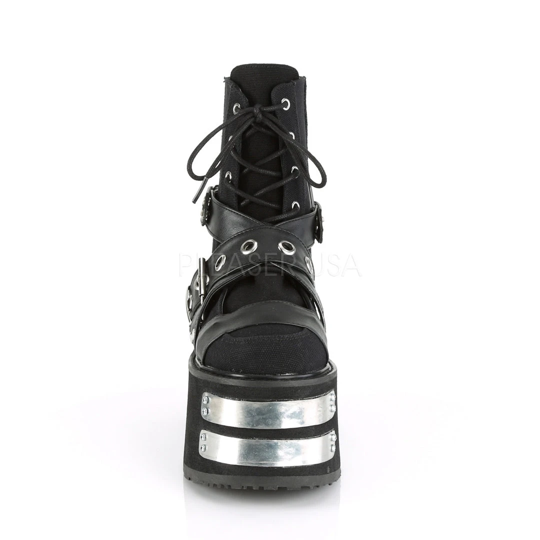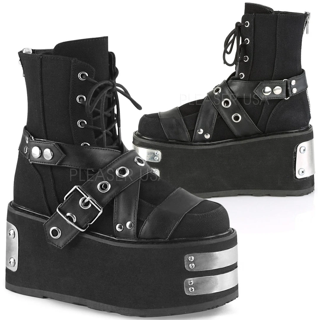 Demonia Ladies Black Canvas Vegan Leather Boots DAMNED-116.