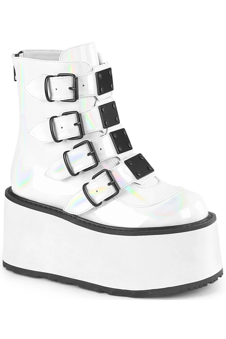 Demonia White Holographic Patent DAMNED105 Boots.