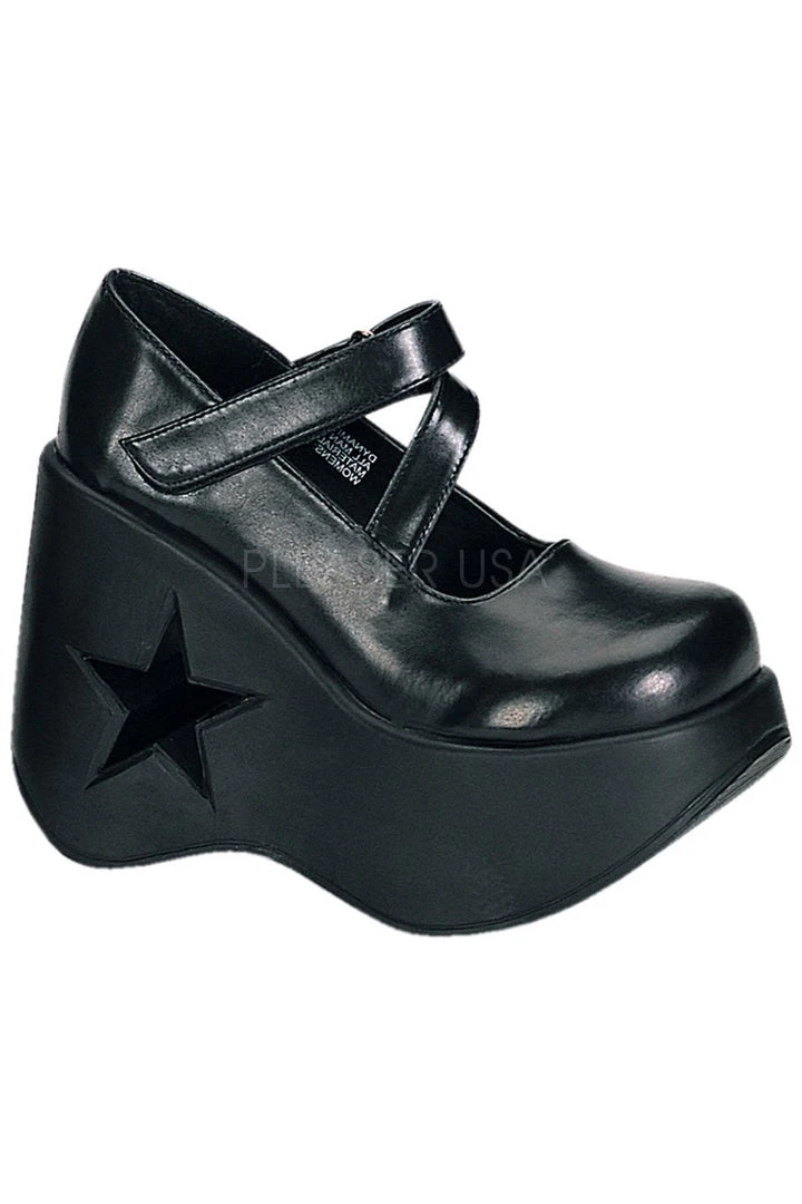 Demonia Ladies Black Vegan Leather Shoes DYNAMITE-03.