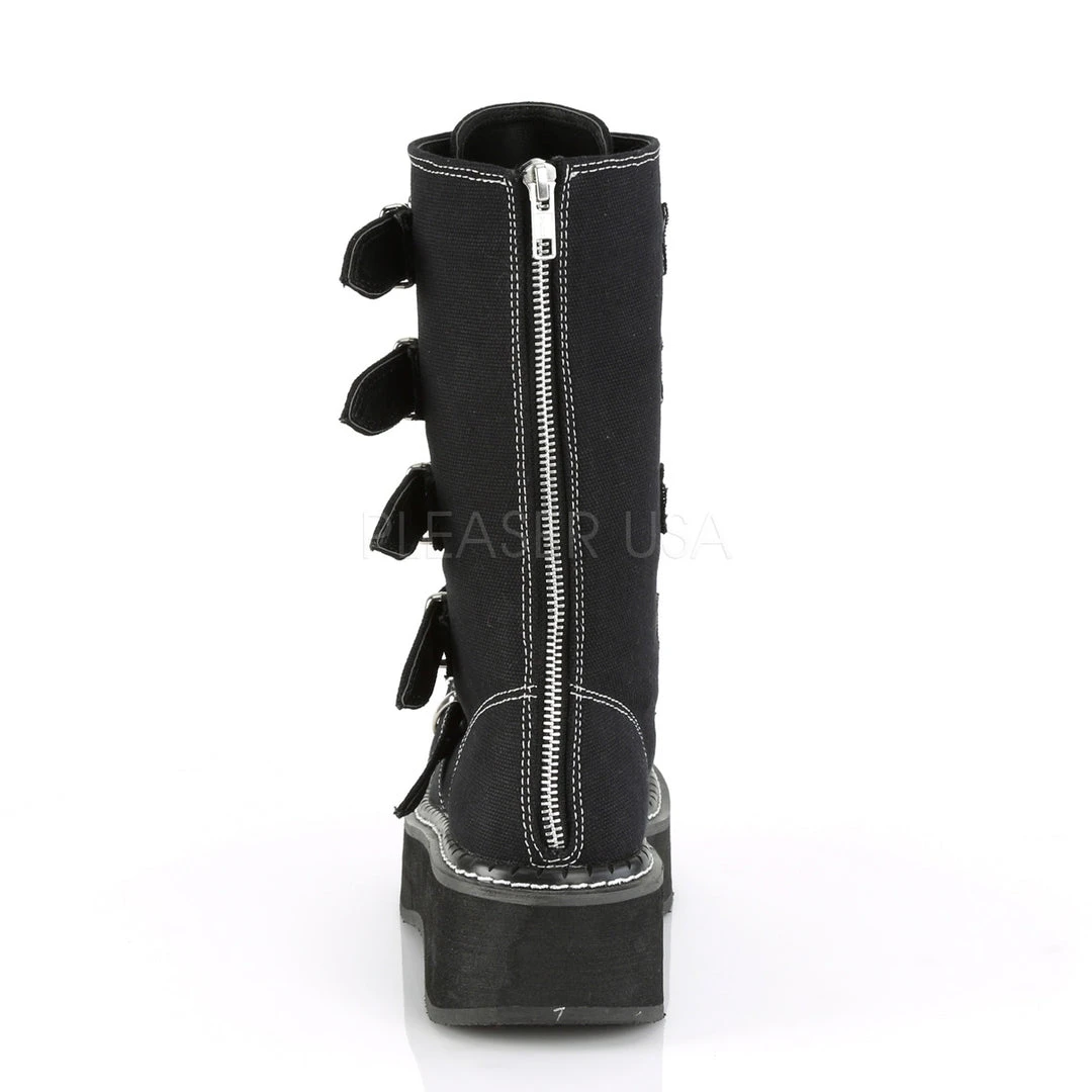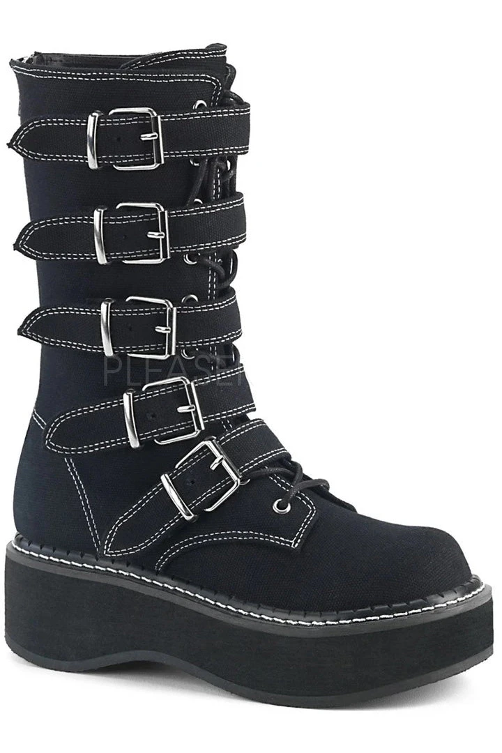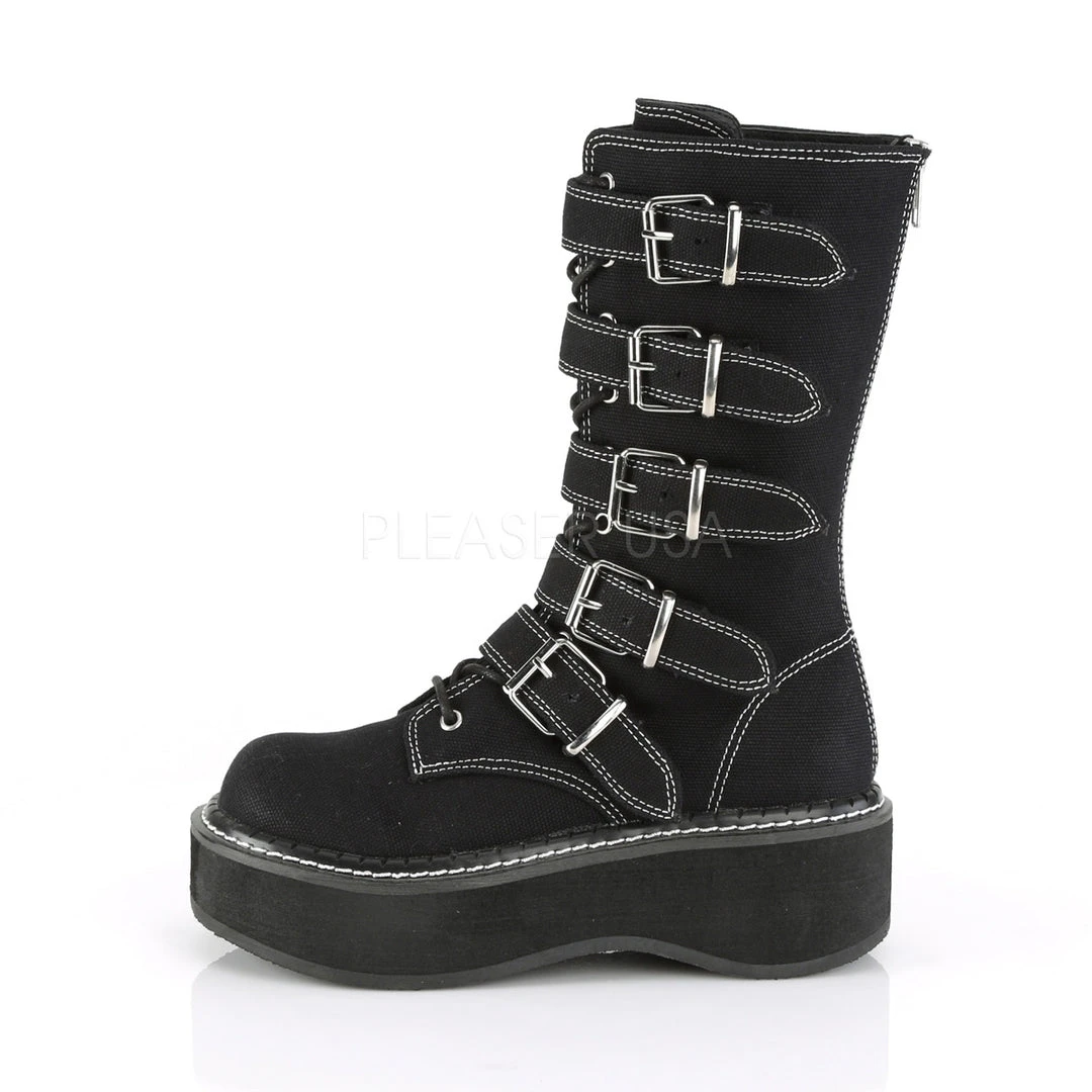2″ (51mm) Platform Lace-Up Front Mid-Calf Boot with 5 Buckle Straps, Back Zip Closure.
