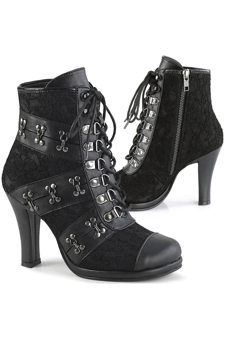 Demonia Black Vegan Leather and Lace GLAM-202 Boots.