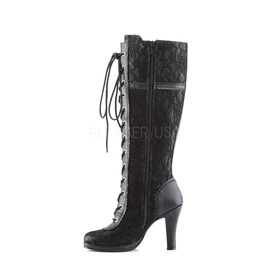 Demonia Black Vegan Leather with Black Lace Overlay GLAM-240 Boots.