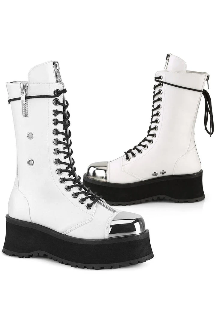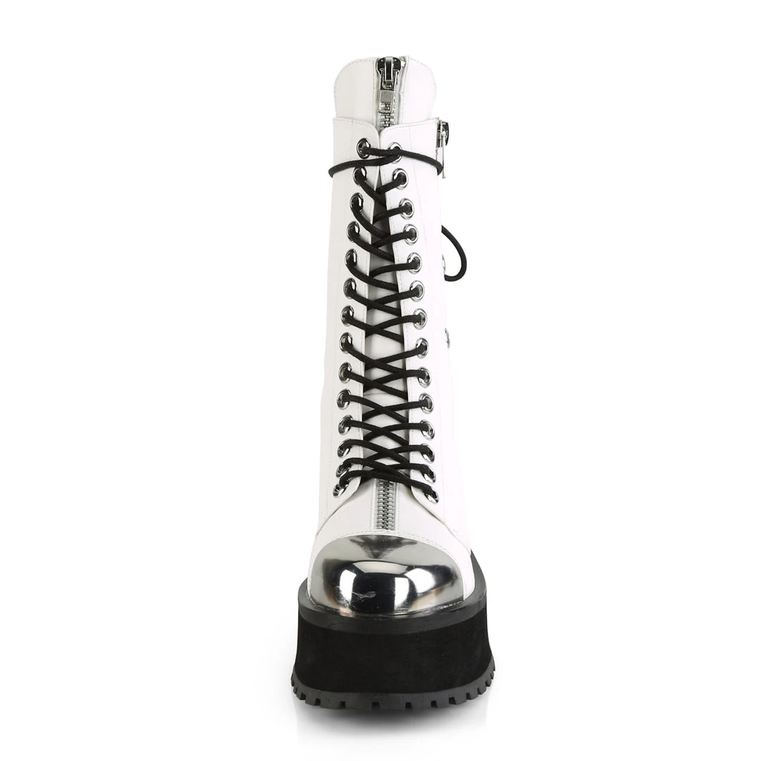 Demonia Mens White Vegan Leather GRAVEDIGGER-14 Boots.