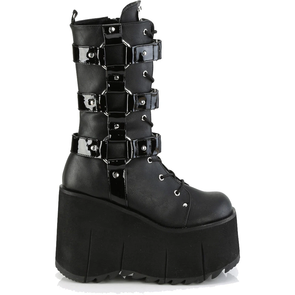 Demonia Black Vegan Leather and Patent KERA 110 Boots.