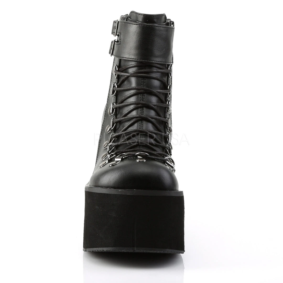 4 1/2″ (11.4cm) Platform Faux Lace-Up Ankle Boot Featuring Adjustable Ankle Cuff, Side Zip.