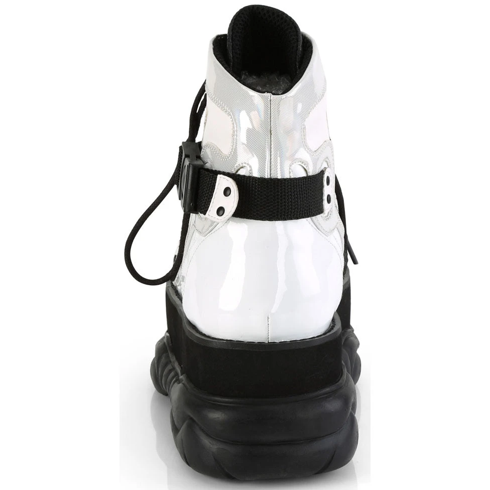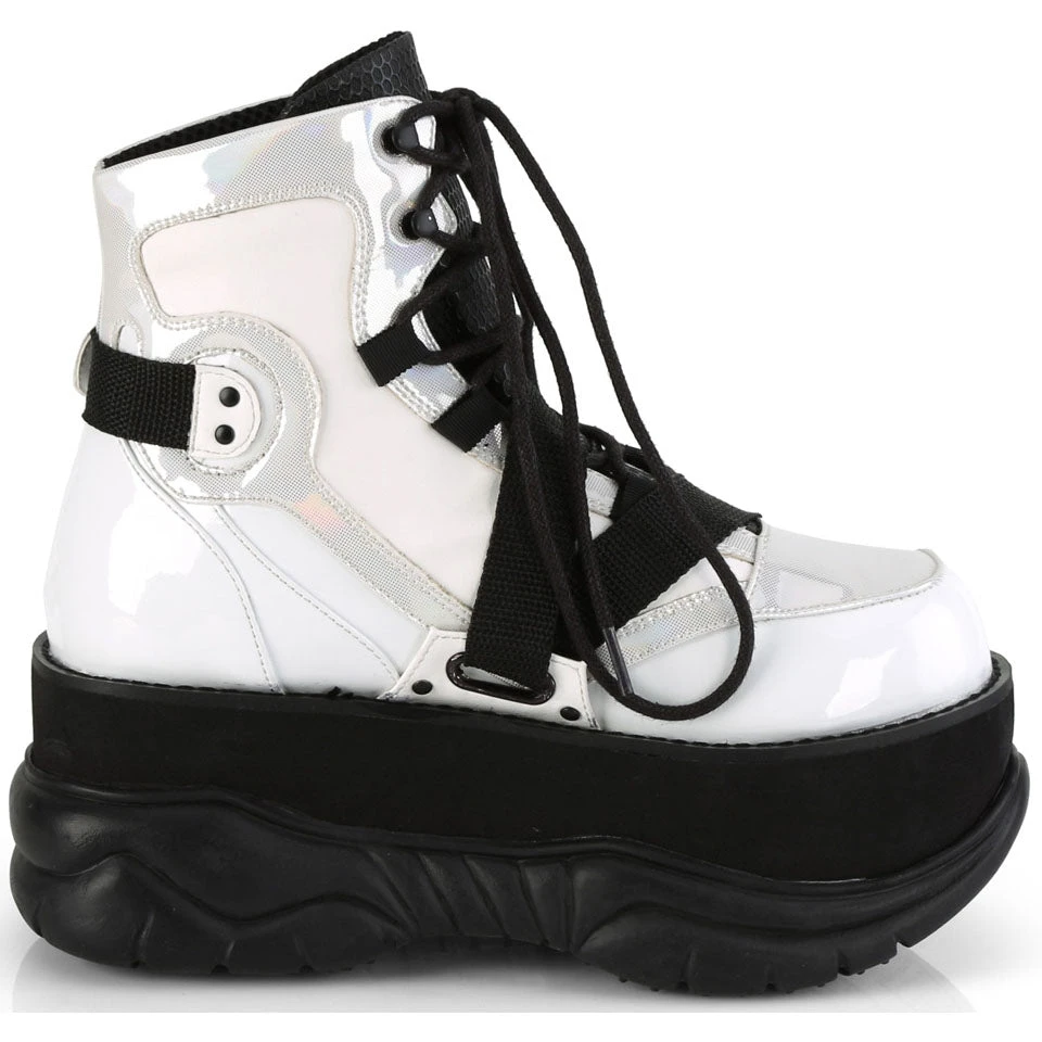3″ (76mm) Platform Lace-Up Front Ankle Boot Featuring Zig-Zag Strap with Quick Release Plastic Buckle.
