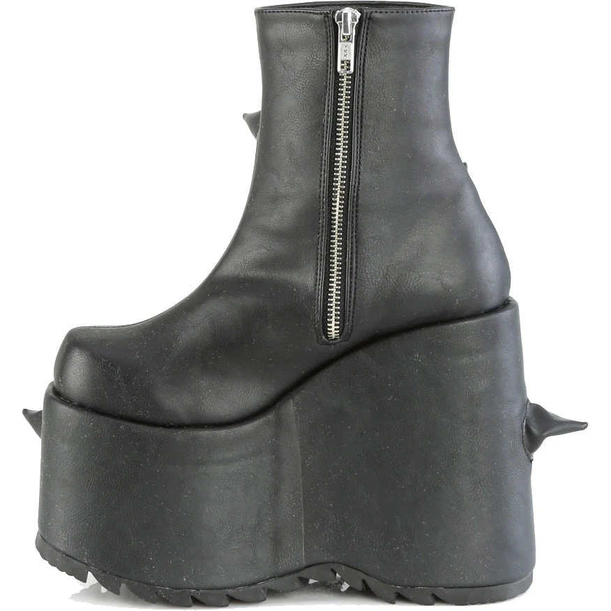 7″ (178mm) Platform Ankle Boot, Featuring Scattered Puffed Horns Vamp and Outer Side of the Boot, Inside Metal Zip Closure.