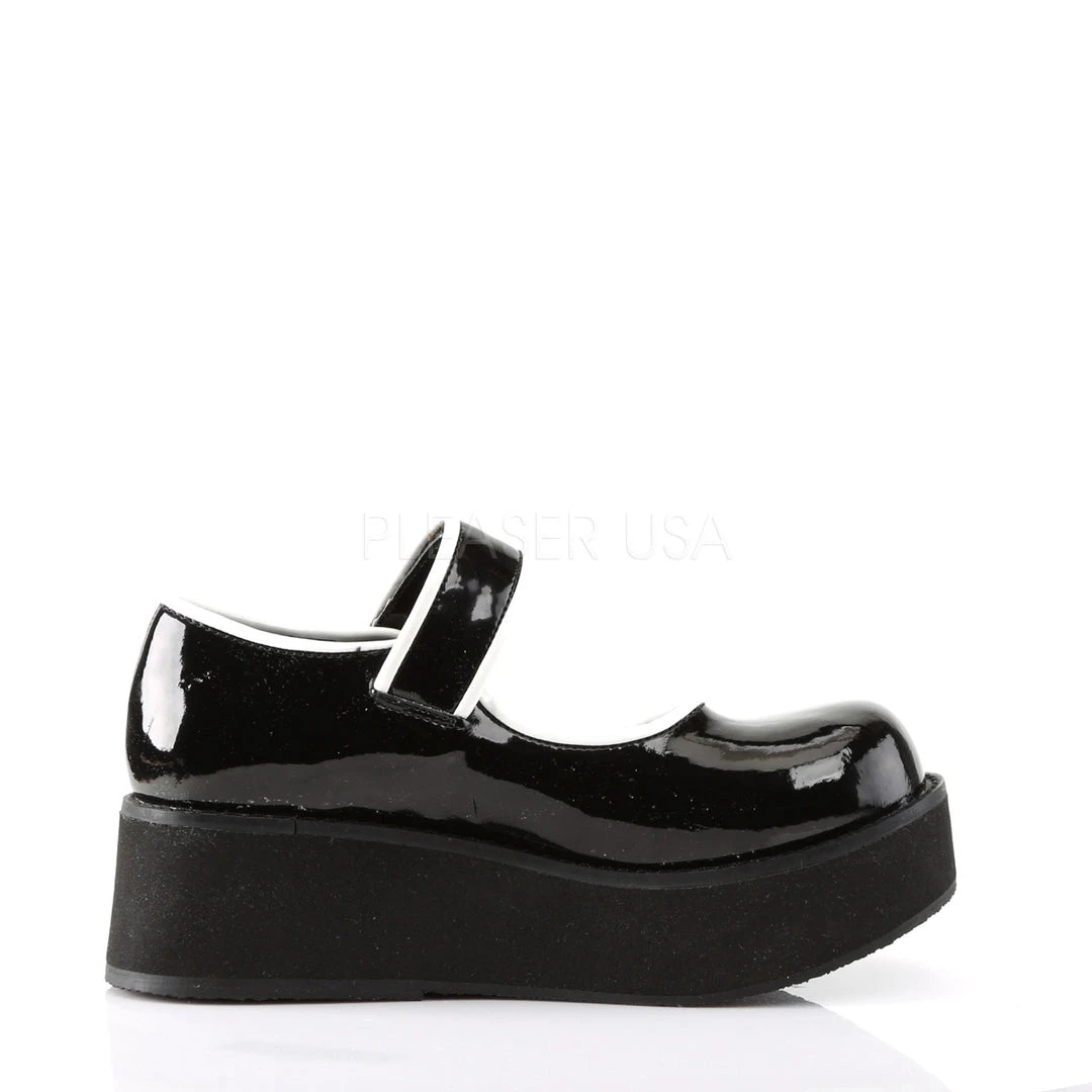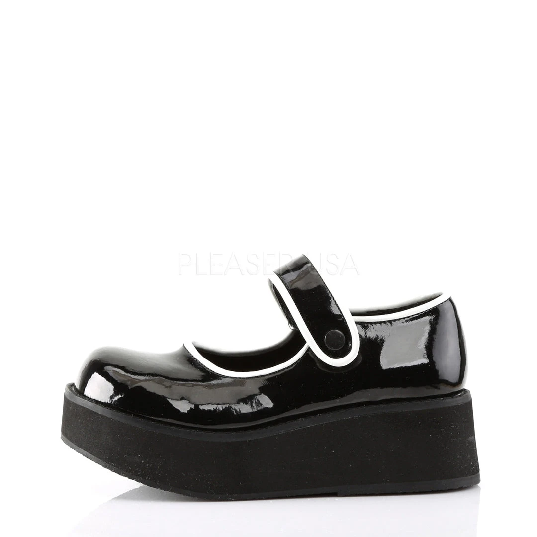 Demonia Ladies Black and White Patent PVC SPRITE-01 Shoes.